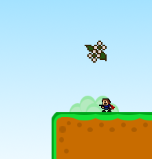 然后往左跳就可以回到这里,注意云上会掉一个雷下来,勾引即可.然后左边那个LOGO会掉下来,也是勾引即可