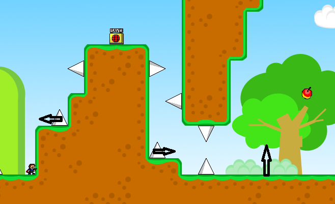 这一面首先树会倒下来,倒下来的时候只要跳起来就不会被压死.然后那个存档会坑,你一跳出去存档就会往右,所以要直接极限大跳.