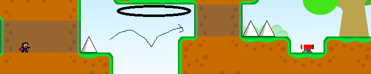 然后不要去踩右边那个弹簧,踩了就会弹到太空里面死掉,要继续往右走