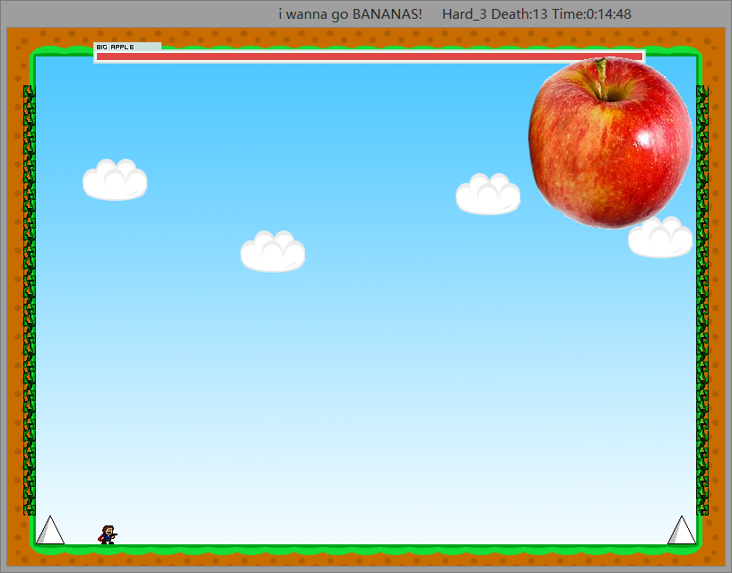 最后这个BOSS,目前有两种打法:1是在左下角,苹果来了就爬墙跳过去,然后伺机输出